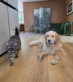 one silly dog and one permanently unimpressed-looking cat, Manny & Bowie 🤭